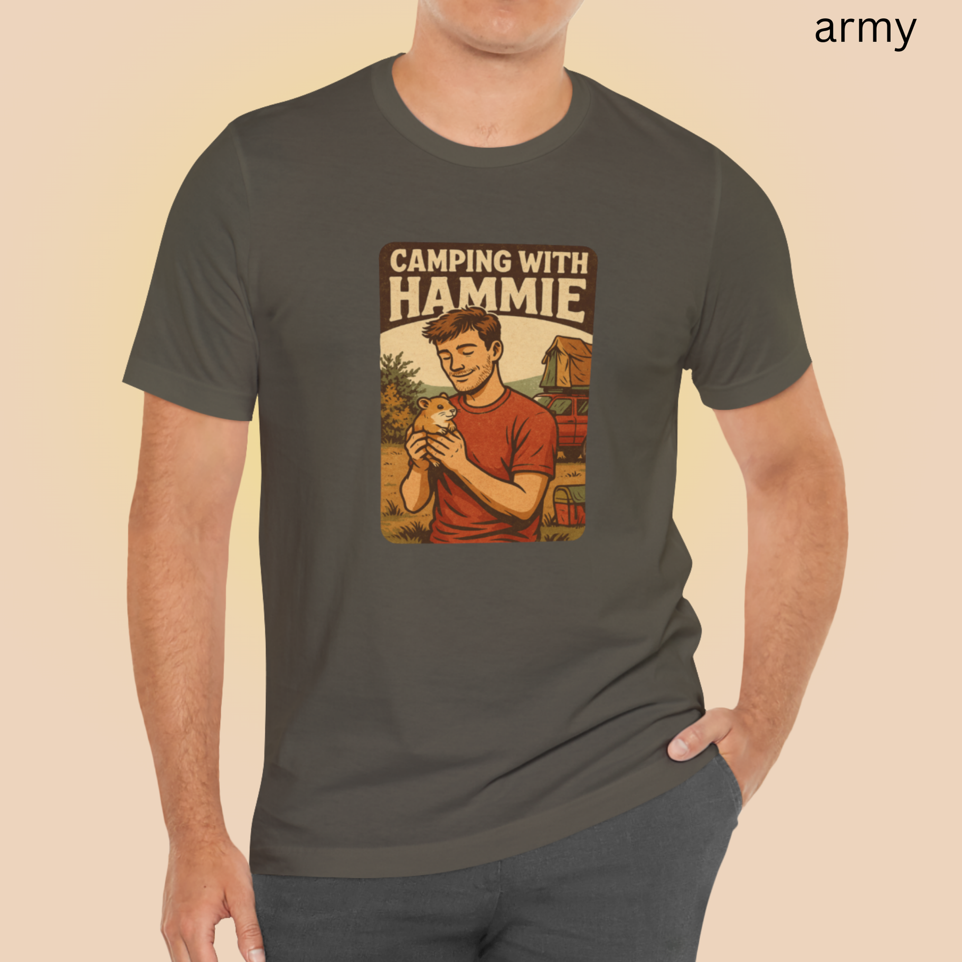 Camping With Hammie T Shirt - Hamster Lover Gift, Retro Outdoor Graphic Tee