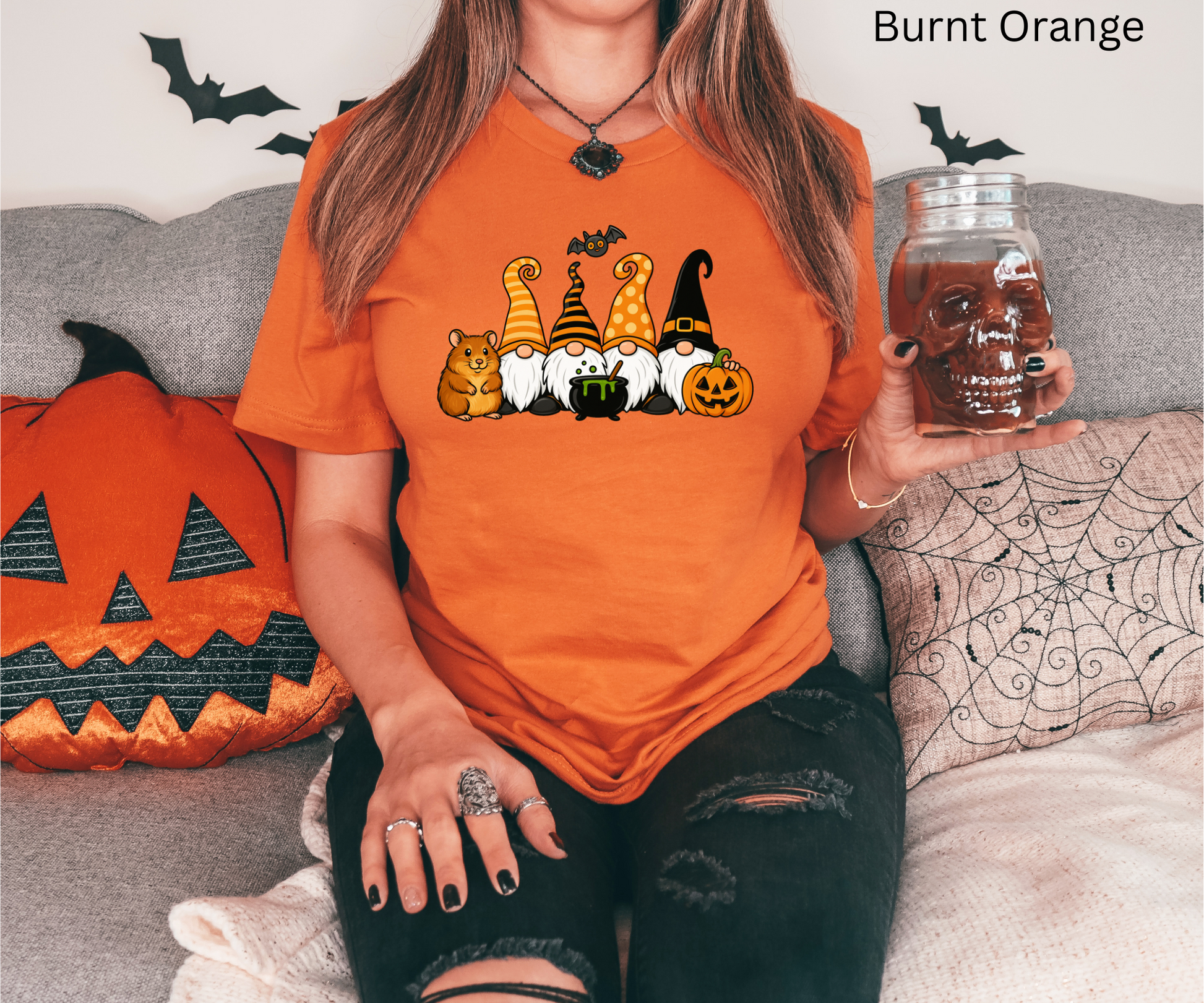 Funny Halloween Hamster Gnomes T-Shirt - Cute Witch Gnome with Pumpkin & Cauldron